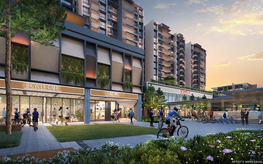 The development is situated on a site zoned for residential use with commercial units on the first storey - Sceneca Square, featuring unique retail and F&B shops. Sceneca Residence will feature around 265 new homes consisting of 1 to 4 bedroom units.